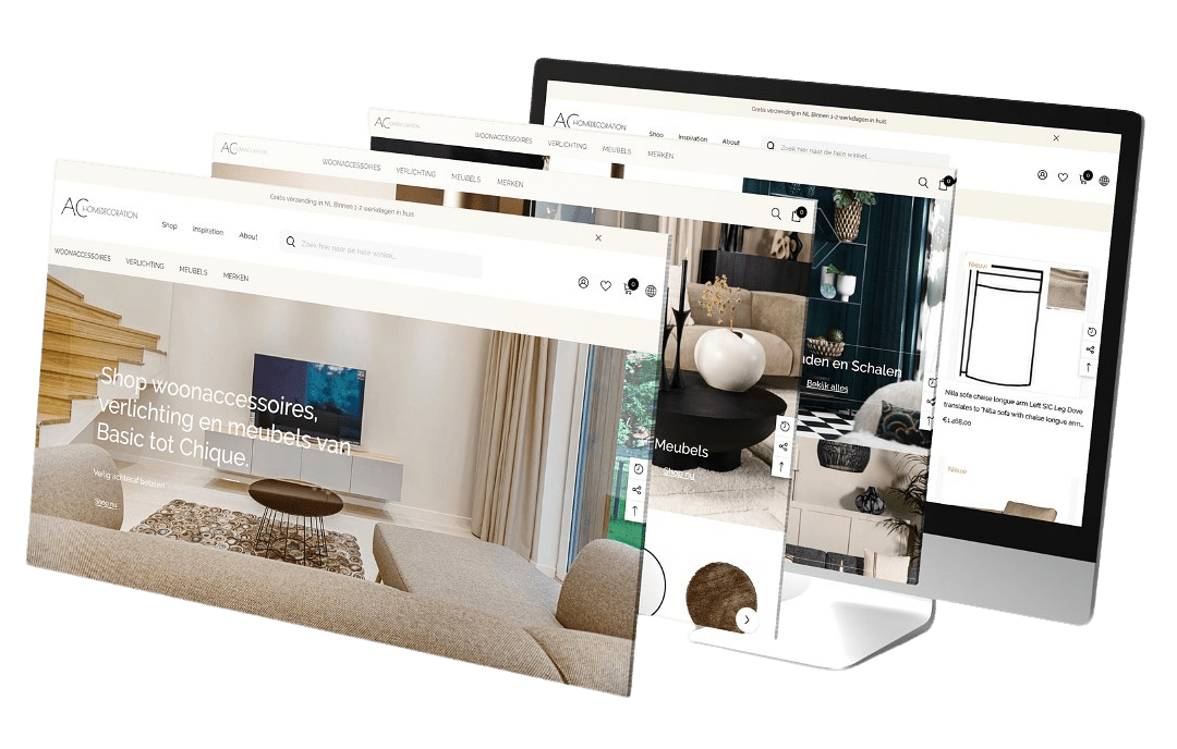 Een compleet nieuw Shopify webshop ontwerp gemaakt, afgestemd op de huisstijl en producten van AC Homedecoration. Het resultaat is een frisse en professionele uitstraling die perfect past bij hun merk.