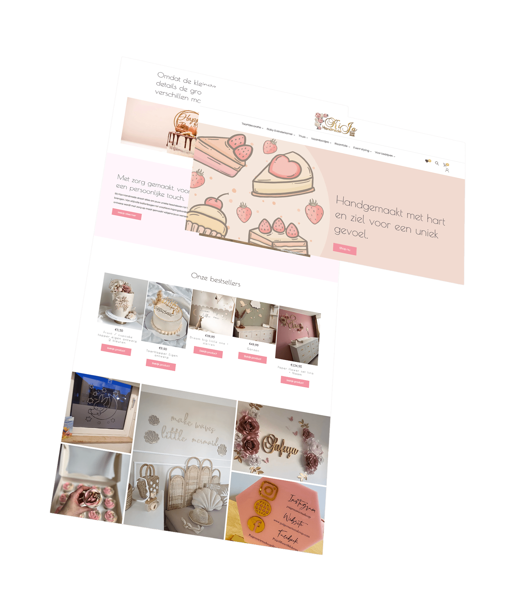 Voor elke klant is een uniek Shopify-ontwerp gemaakt dat volledig aansluit bij de huisstijl en doelgroep. Van kleuren en lettertypes tot de indeling en fotografie, alles is ontworpen voor een professionele en herkenbare uitstraling die past bij het merk.