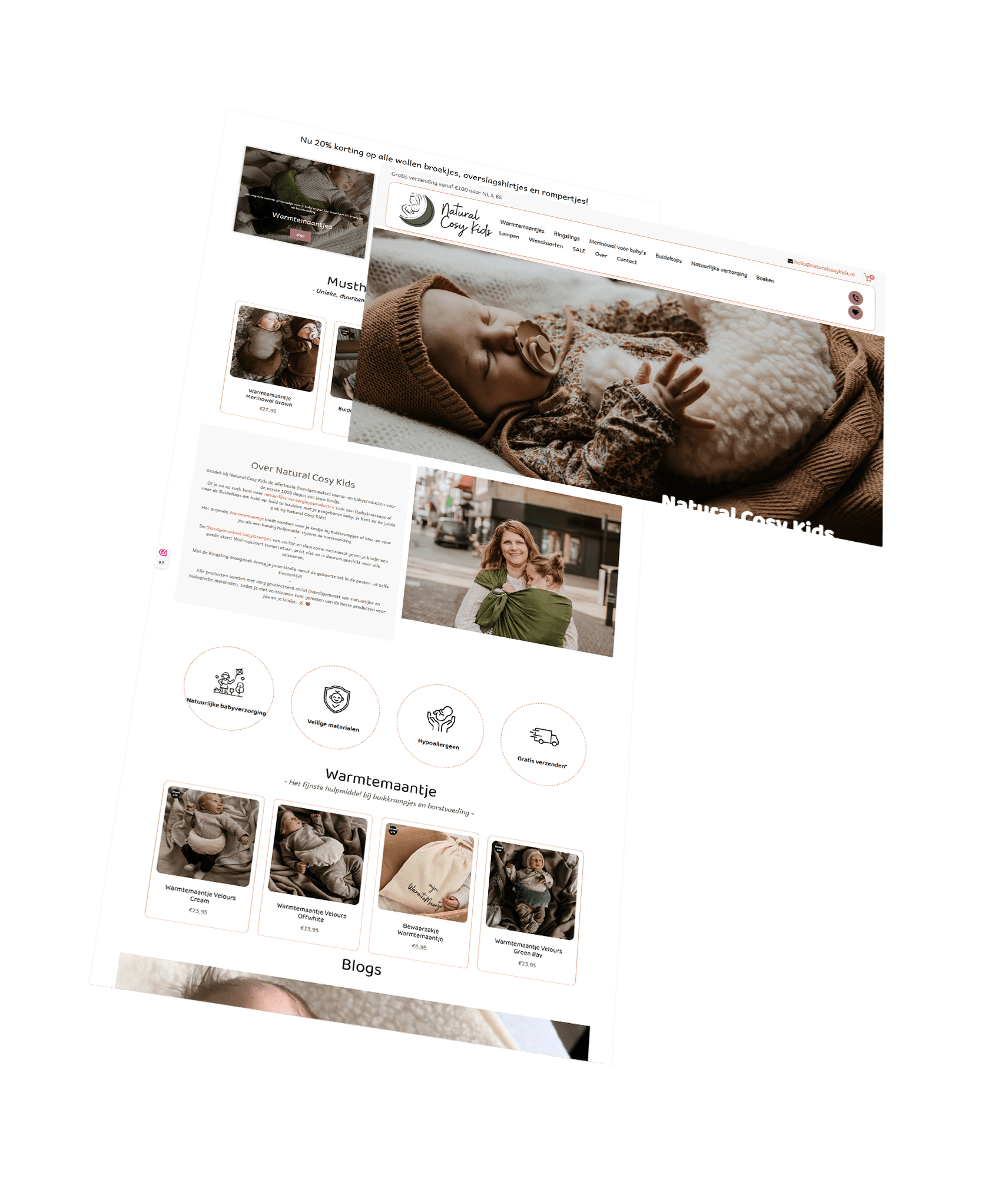Voor elke klant is een uniek Shopify-ontwerp gemaakt dat volledig aansluit bij de huisstijl en doelgroep. Van kleuren en lettertypes tot de indeling en fotografie, alles is ontworpen voor een professionele en herkenbare uitstraling die past bij het merk.